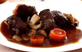 A maioria das referências cita a região de Borgonha como origem do prato, que provavelmente utilizava os vinhos da região para o preparo do prato. A receita foi inventada para utilizar cortes de carne mais duros, que cozinhavam por um longo período para ficar macia. Além disso utilizavam vinho e elementos aromáticos para esconder sabores desagradáveis que poderiam existir pela má conservação dos produtos.